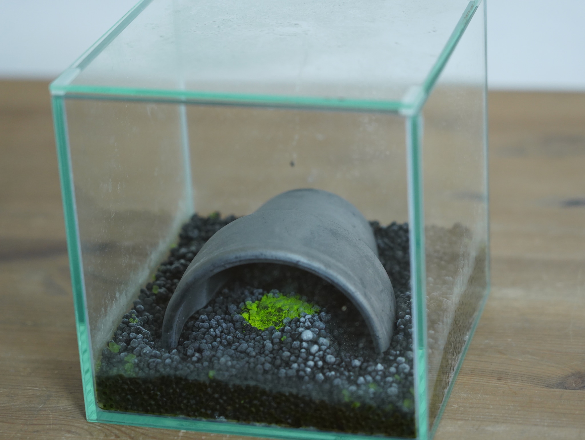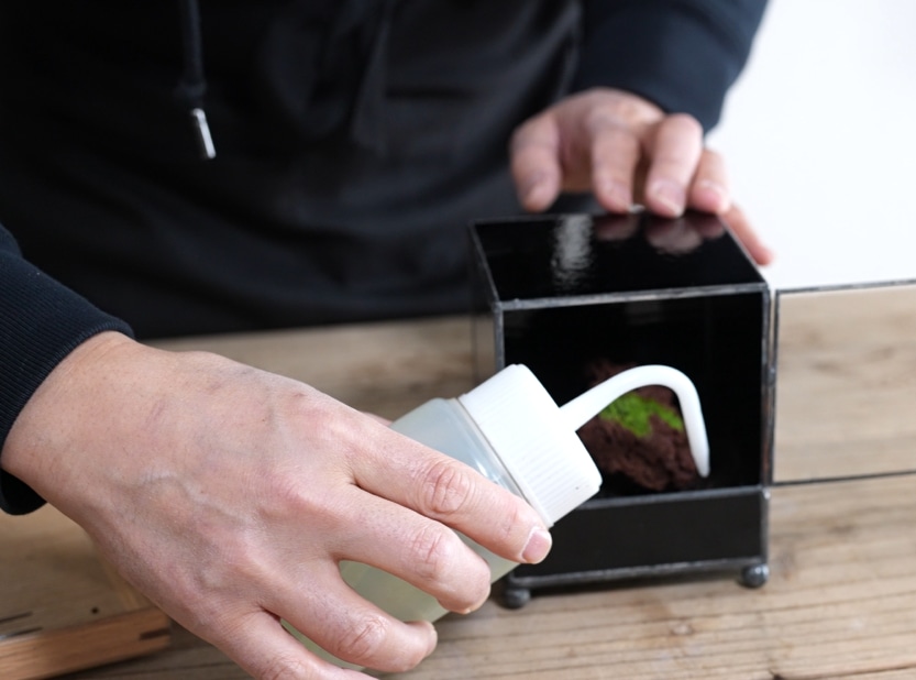 特別な容器で育てるのだから、ヒカリゴケもただ植えるだけではつまらない。