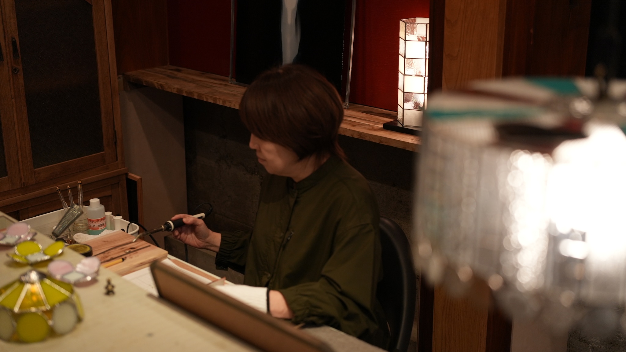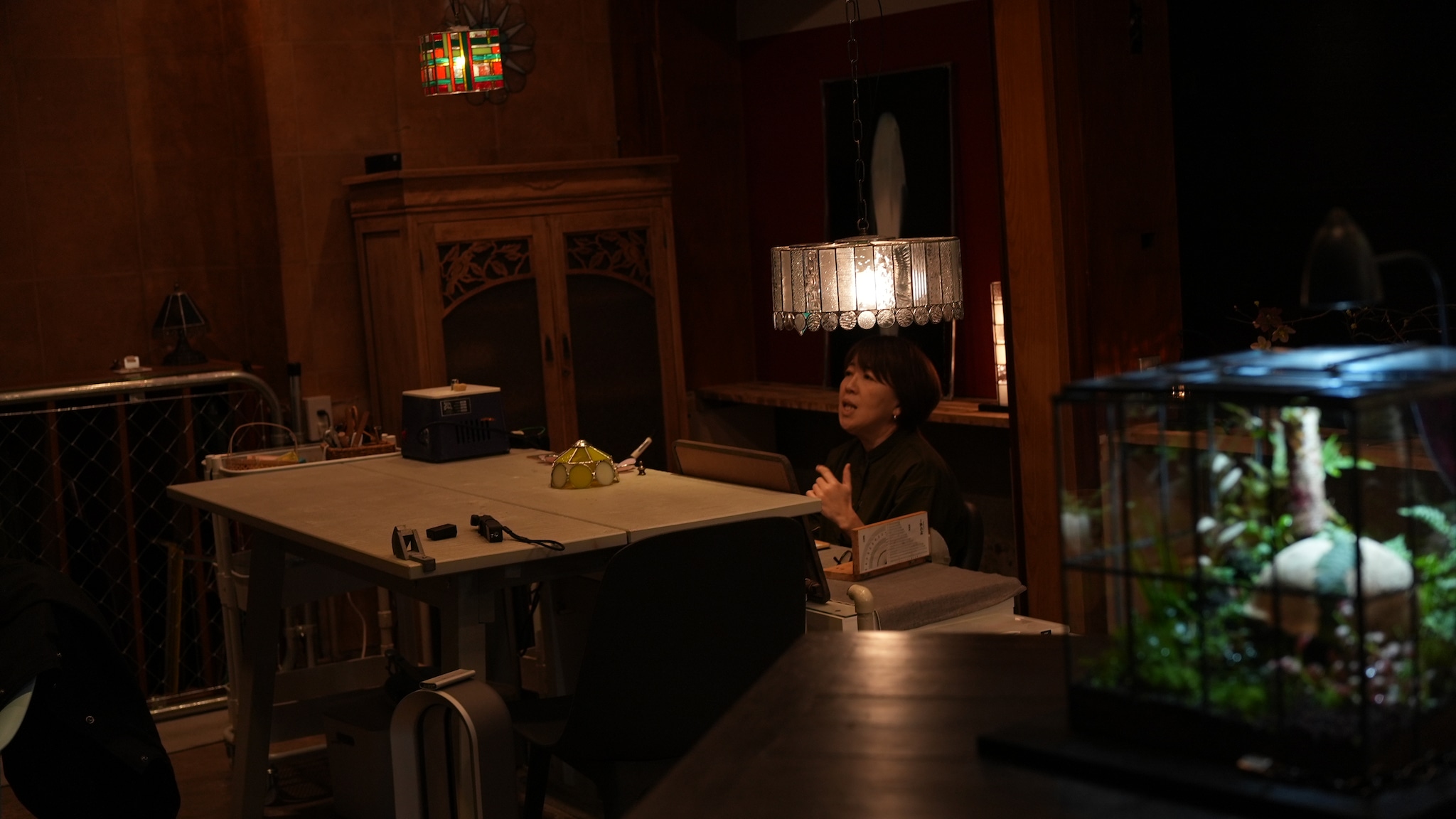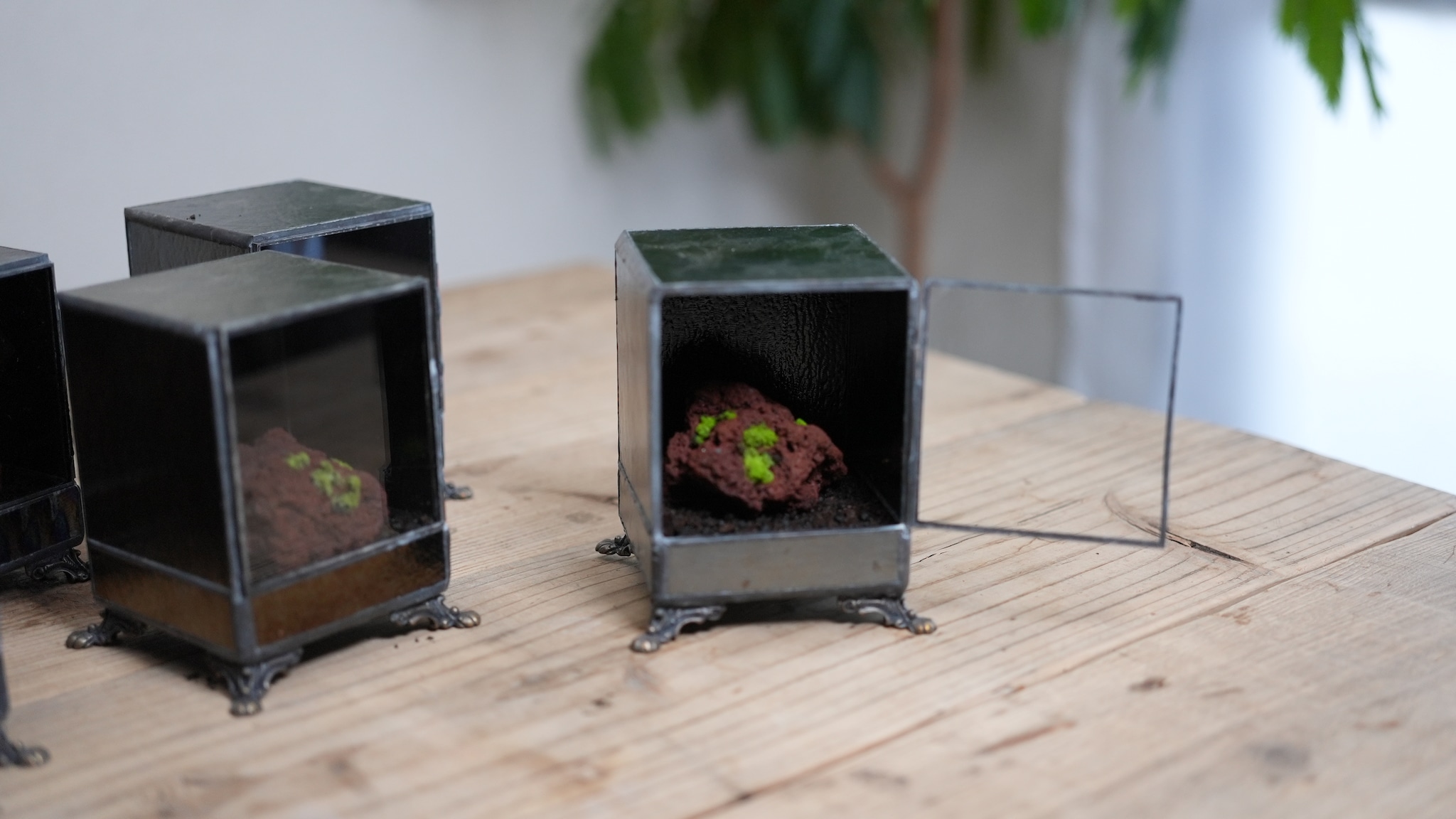 色々なガラスを組み合わせるステンドグラスだからこそ作れる、ヒカリゴケのためだけの容器ができました。