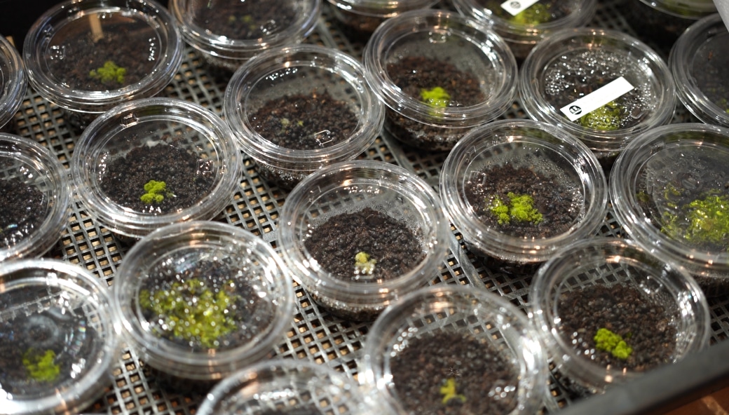 道草で昨年から力を入れているヒカリゴケ栽培。原糸体がキラキラ光ることで知られる、人気のコケです。