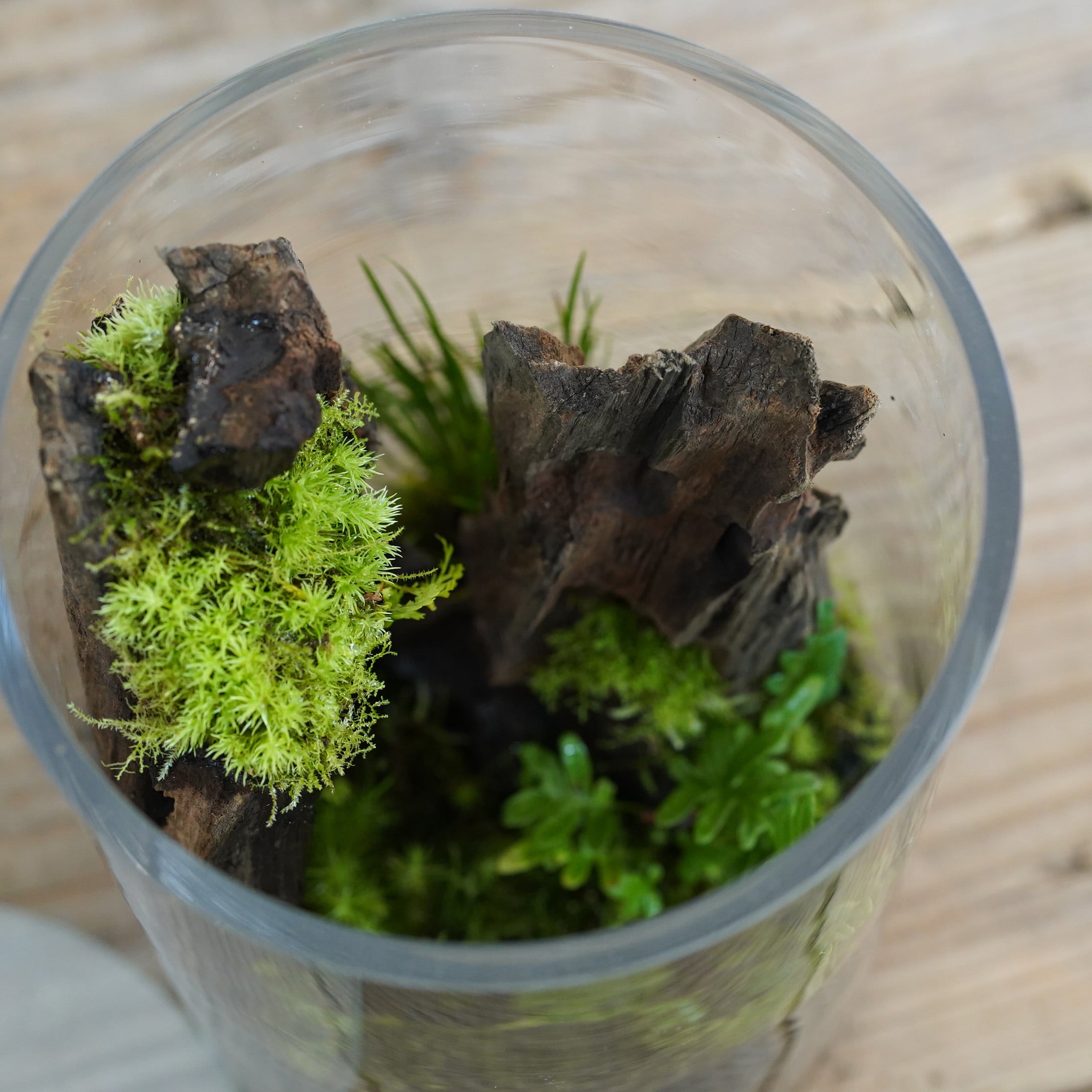コケがしっかり根付き、テラリウムの環境に慣れているので、トラブルも起こりにくくなります。