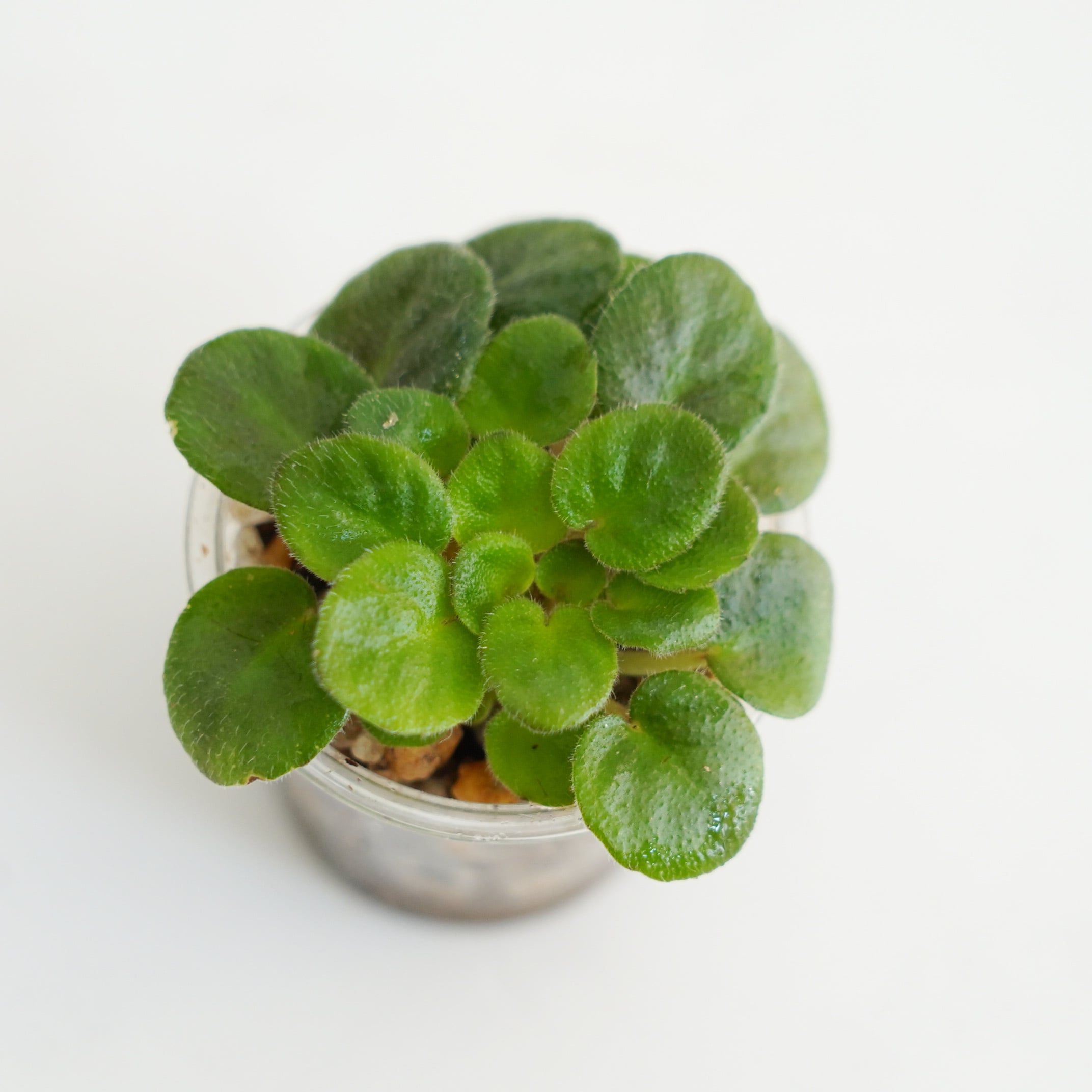 セントポーリアの中でも特に葉の小さな種類で、苔テラリウムにレイアウトしても邪魔をしません。
