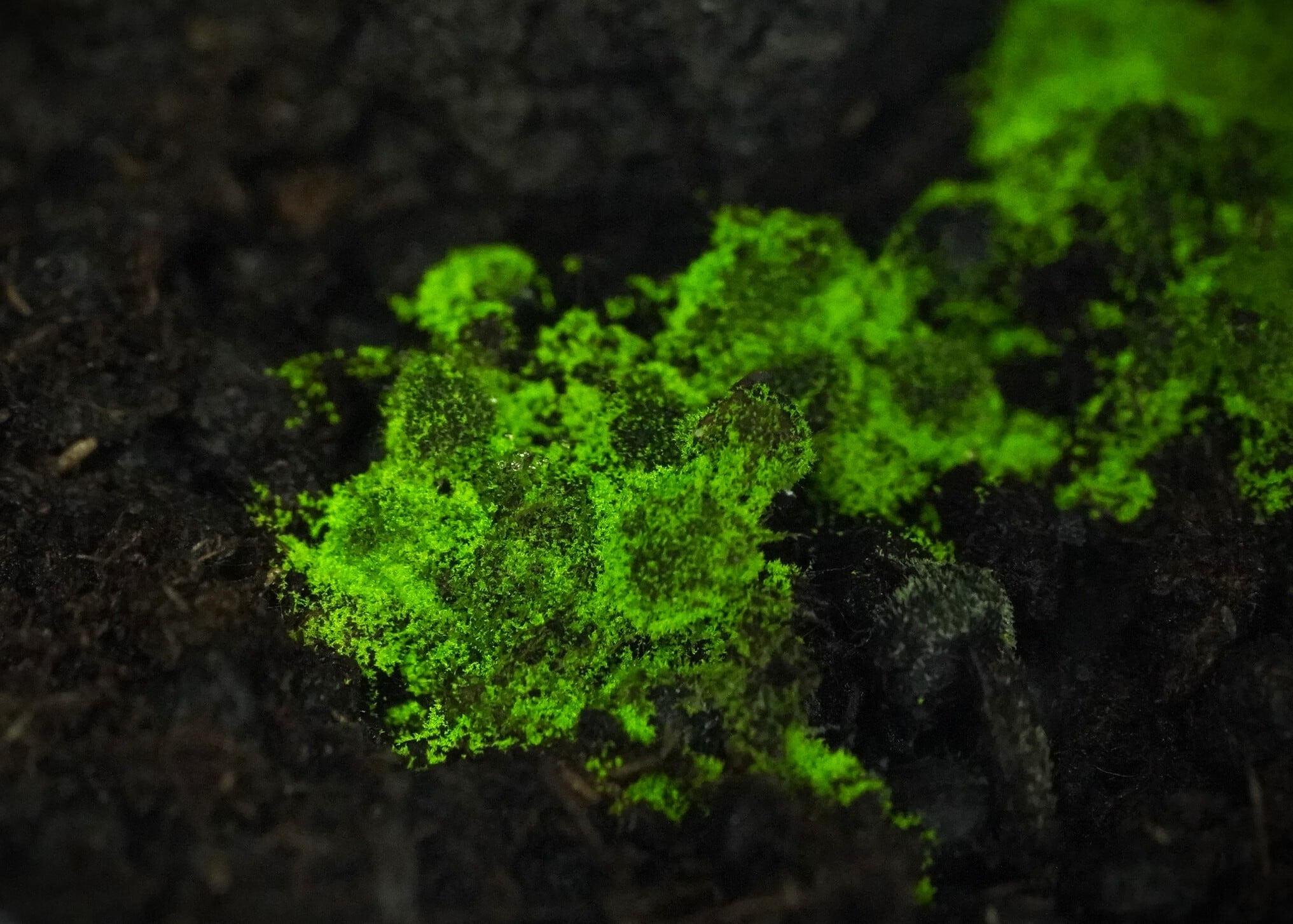 ヒカリゴケの土