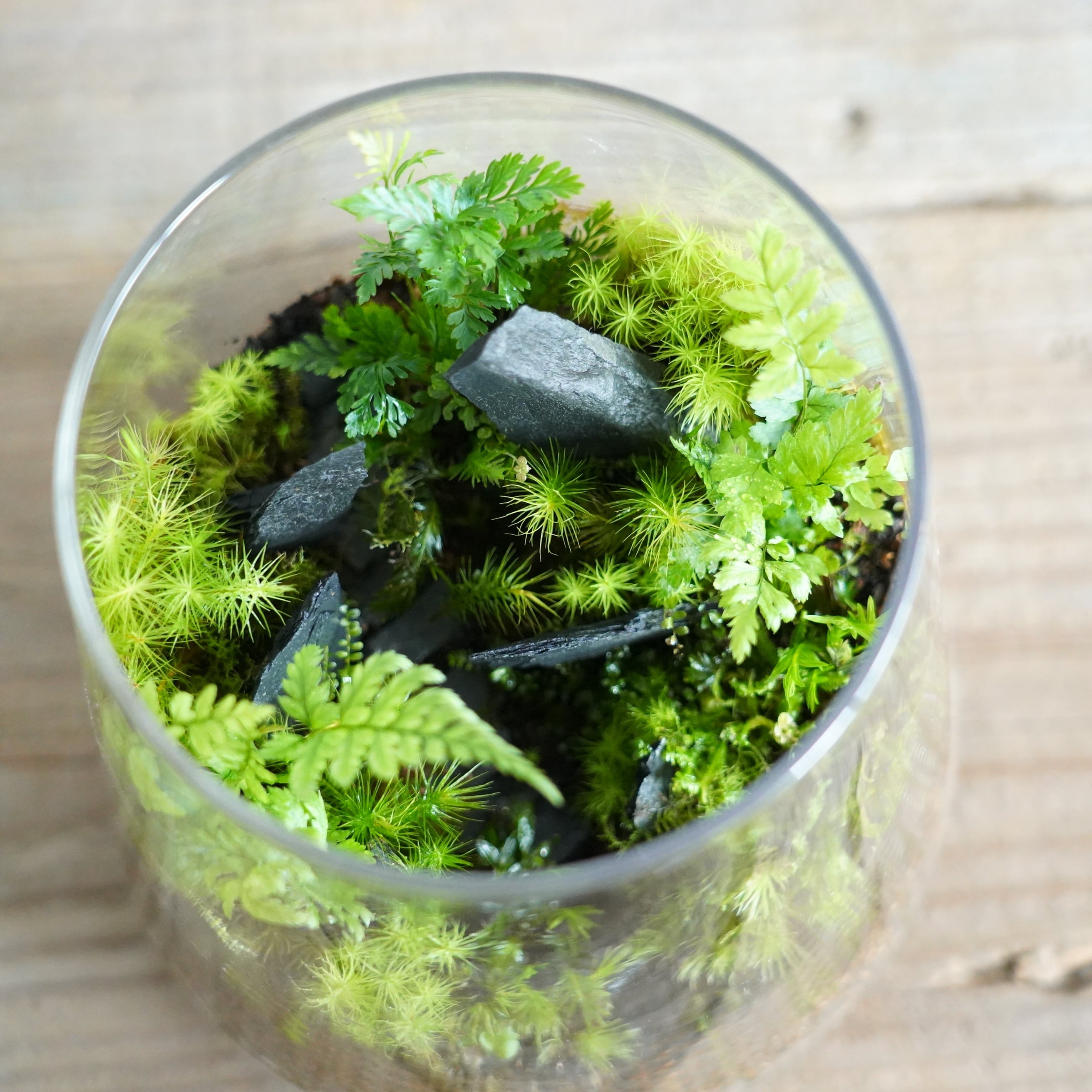 道草の苔テラリウムは製作後一ヶ月以上の時間をかけて、環境に馴らしてから販売しているので、カビや虫の心配がありません。