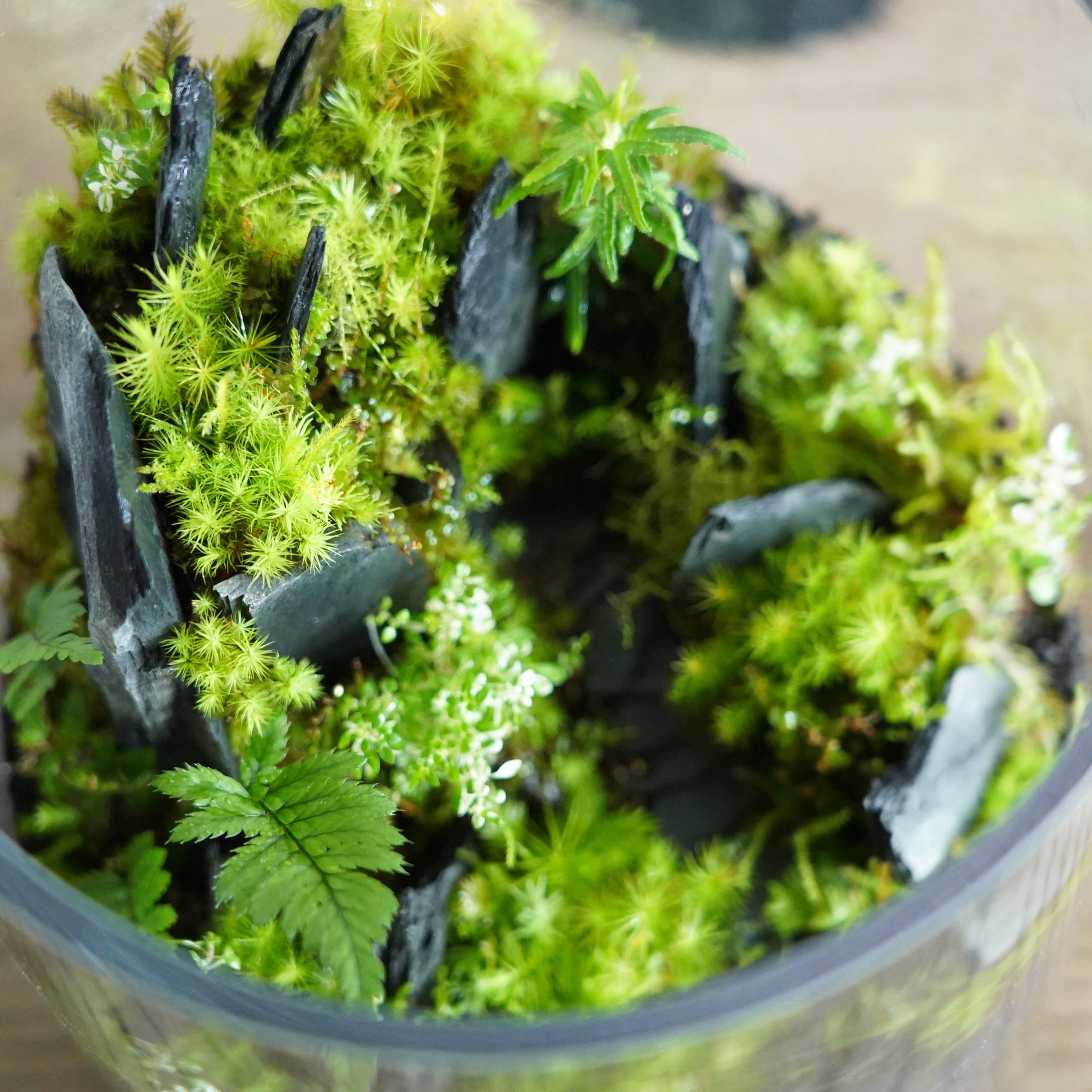 コケがしっかり根付き、テラリウムの環境に慣れているので、トラブルも起こりにくくなります。