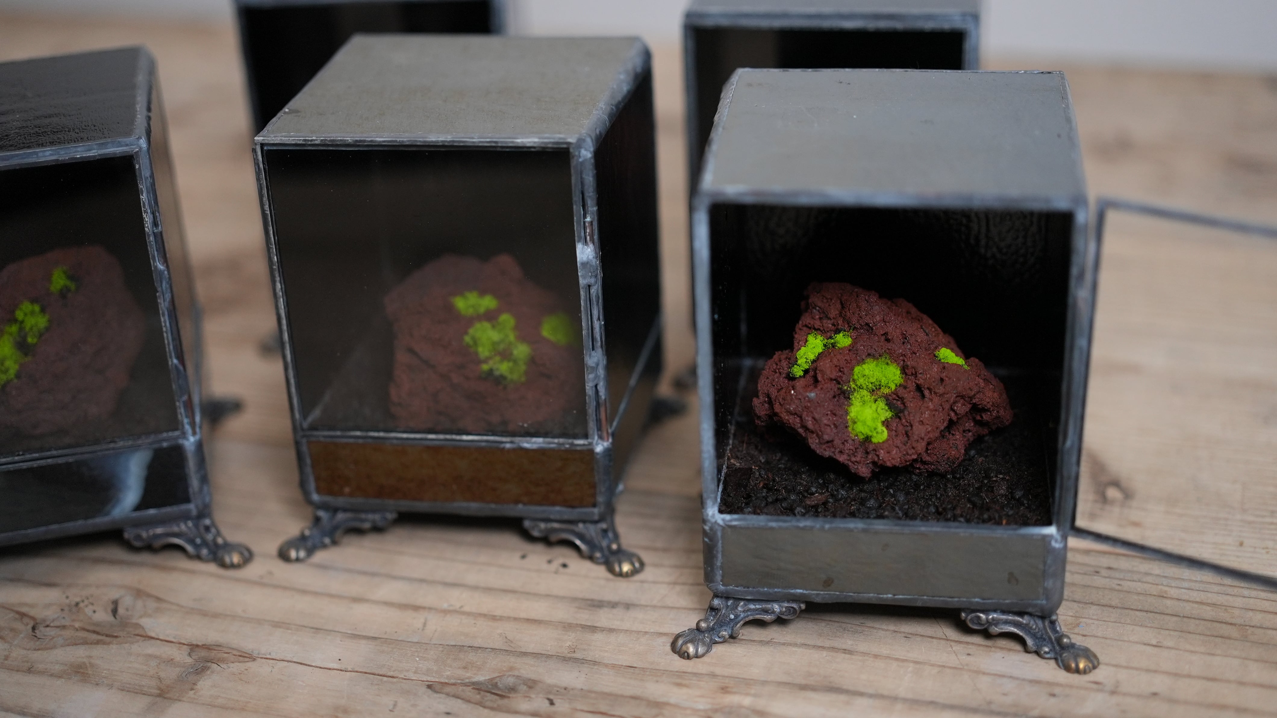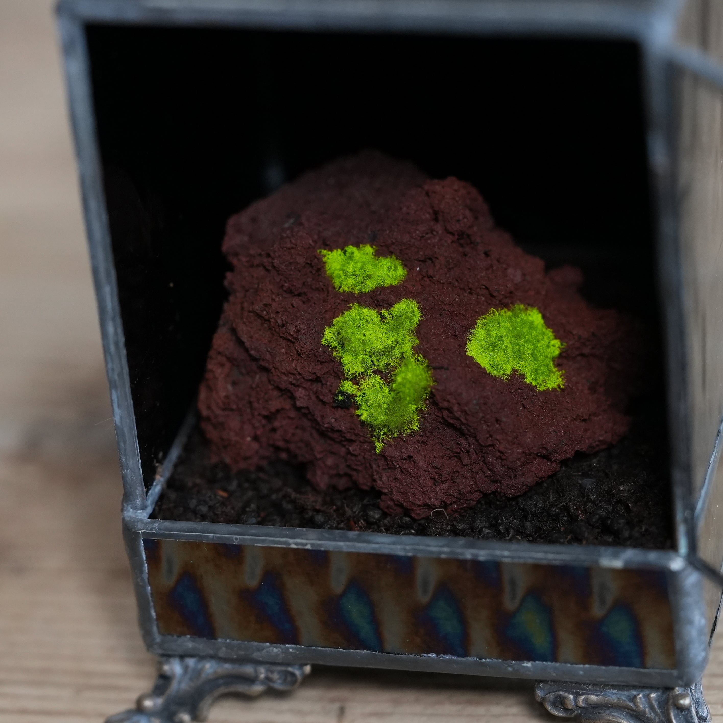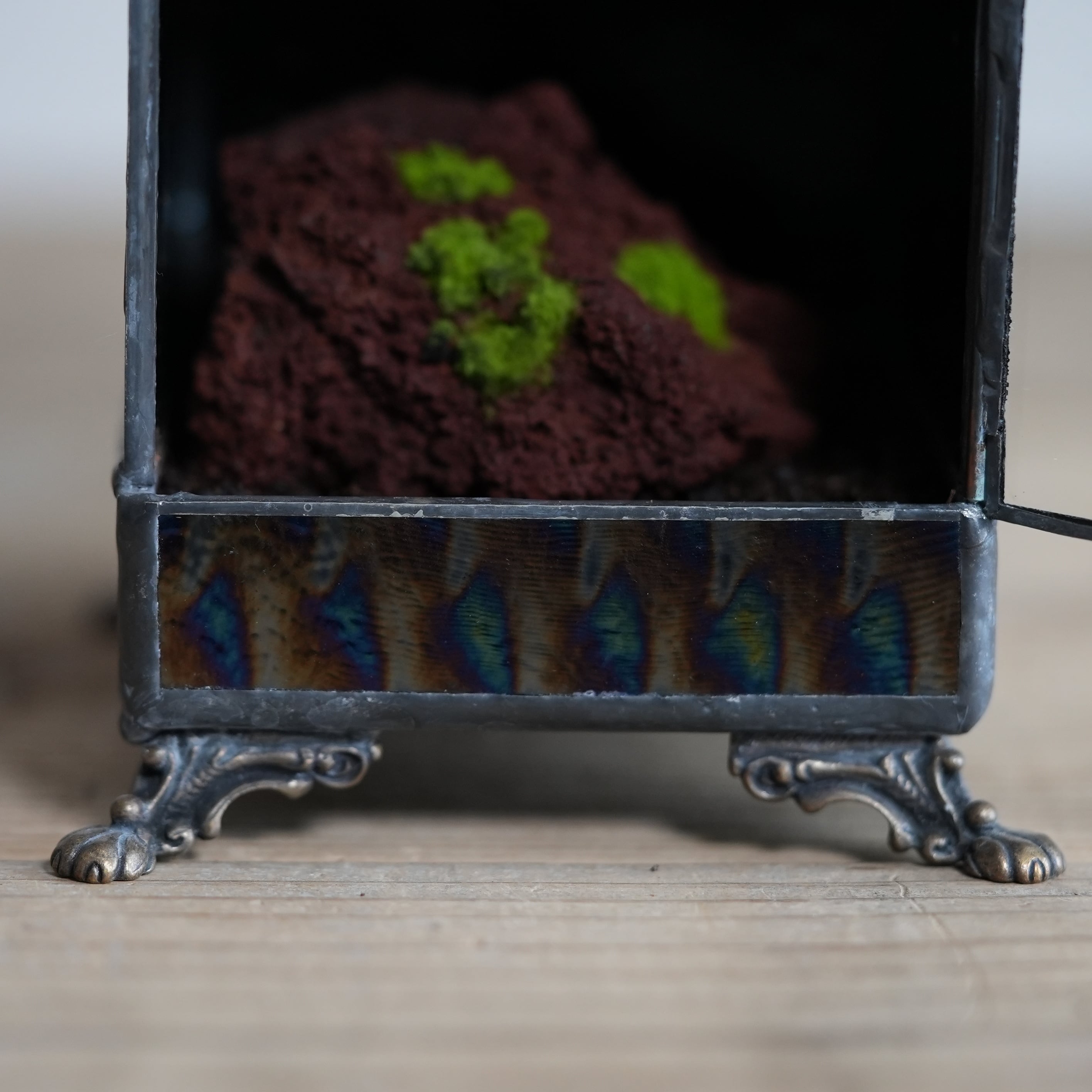 ステンドグラス作家IKUITさんと一緒に、ヒカリゴケを育てるための専用のガラス容器を企画しました。