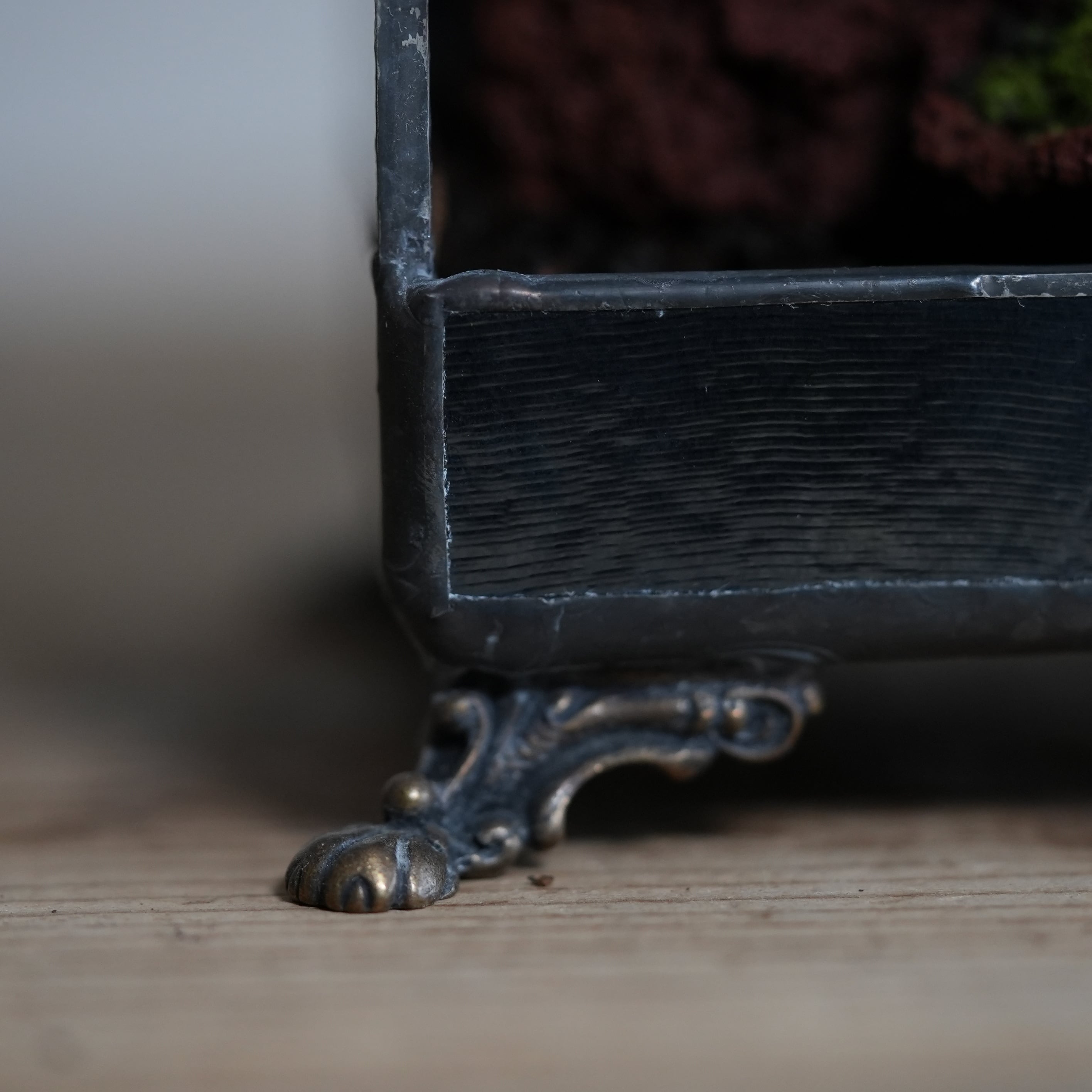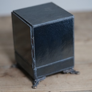 足つきのアンティーク風デザインと手前に開く扉は、まるで宝箱のよう。
