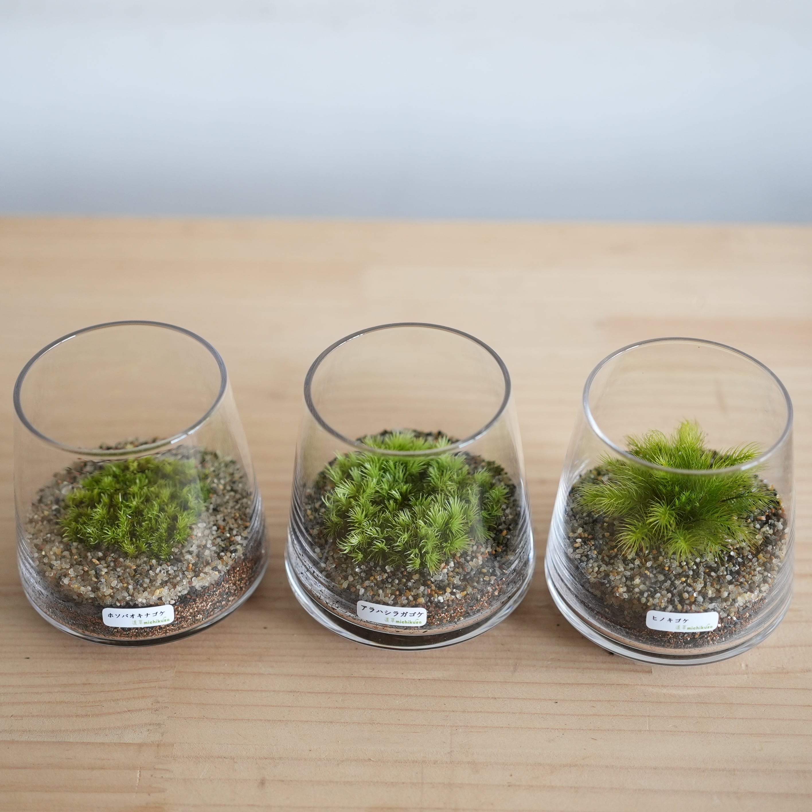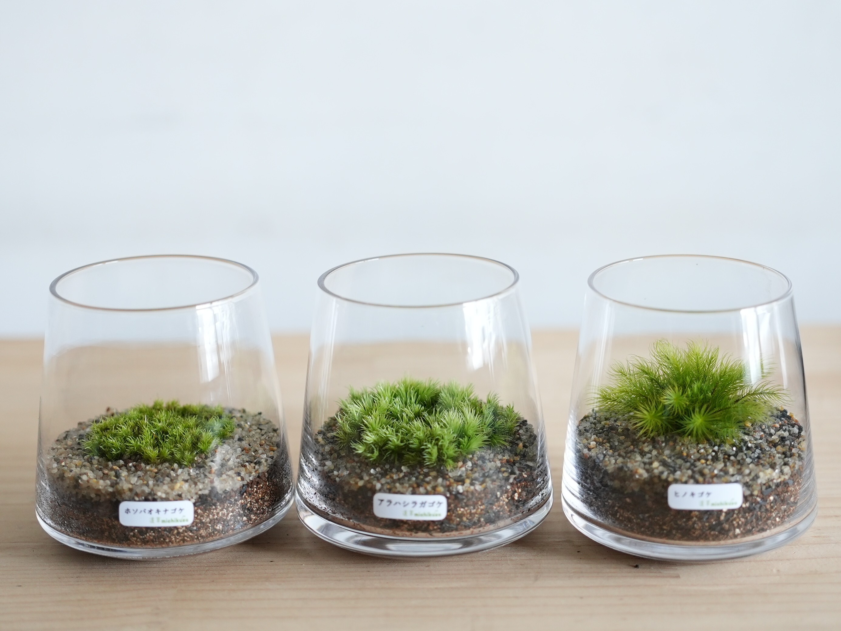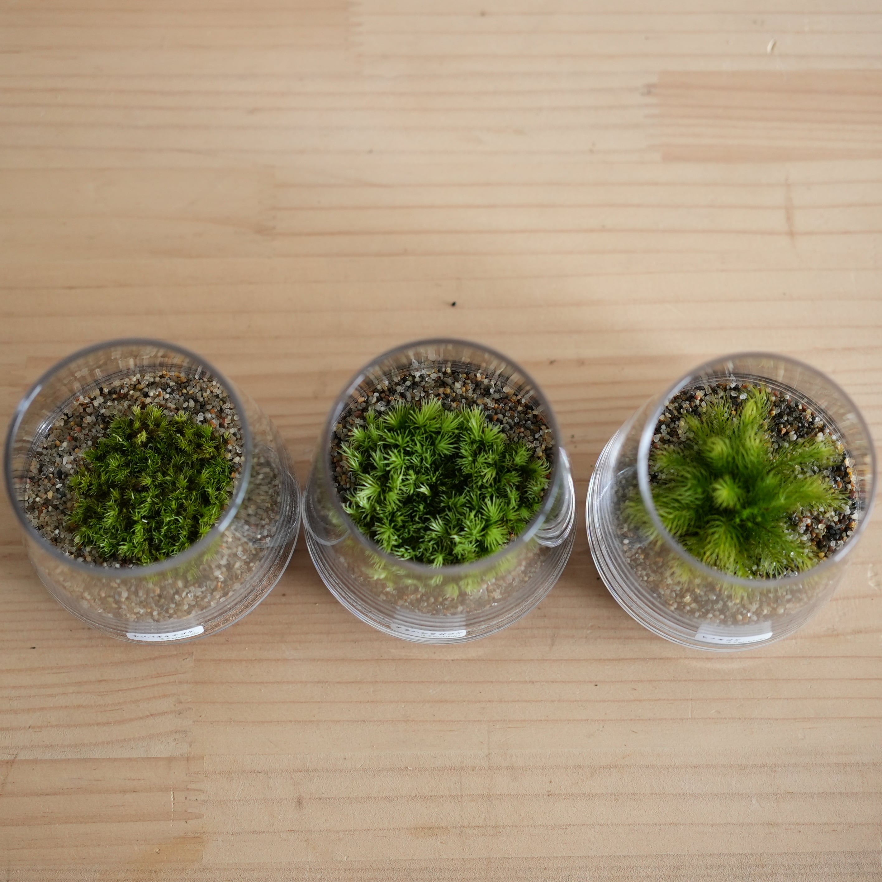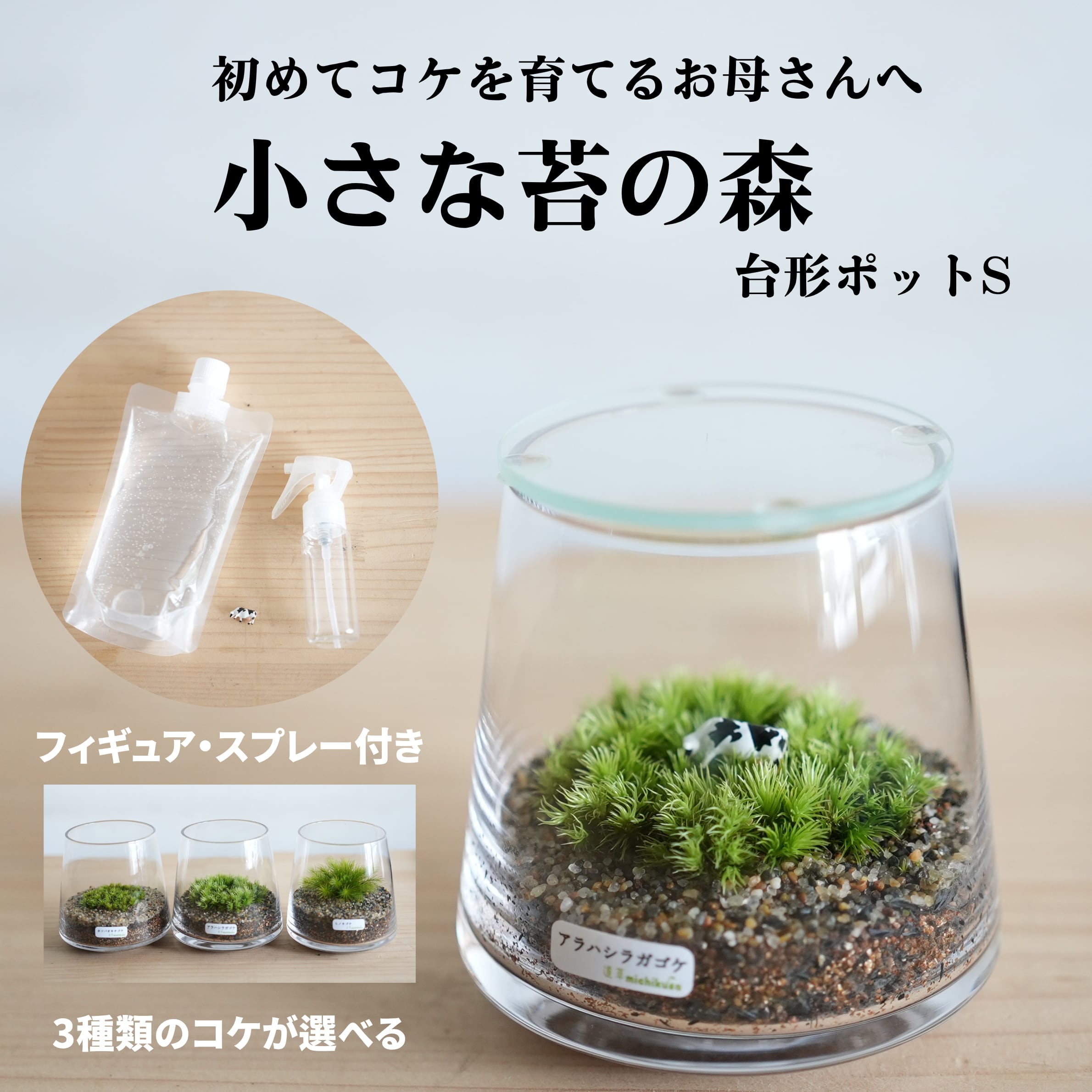 なるべく失敗することなく育っていく様子を楽しんでほしいという思いで、3種類のコケをご用意しました。