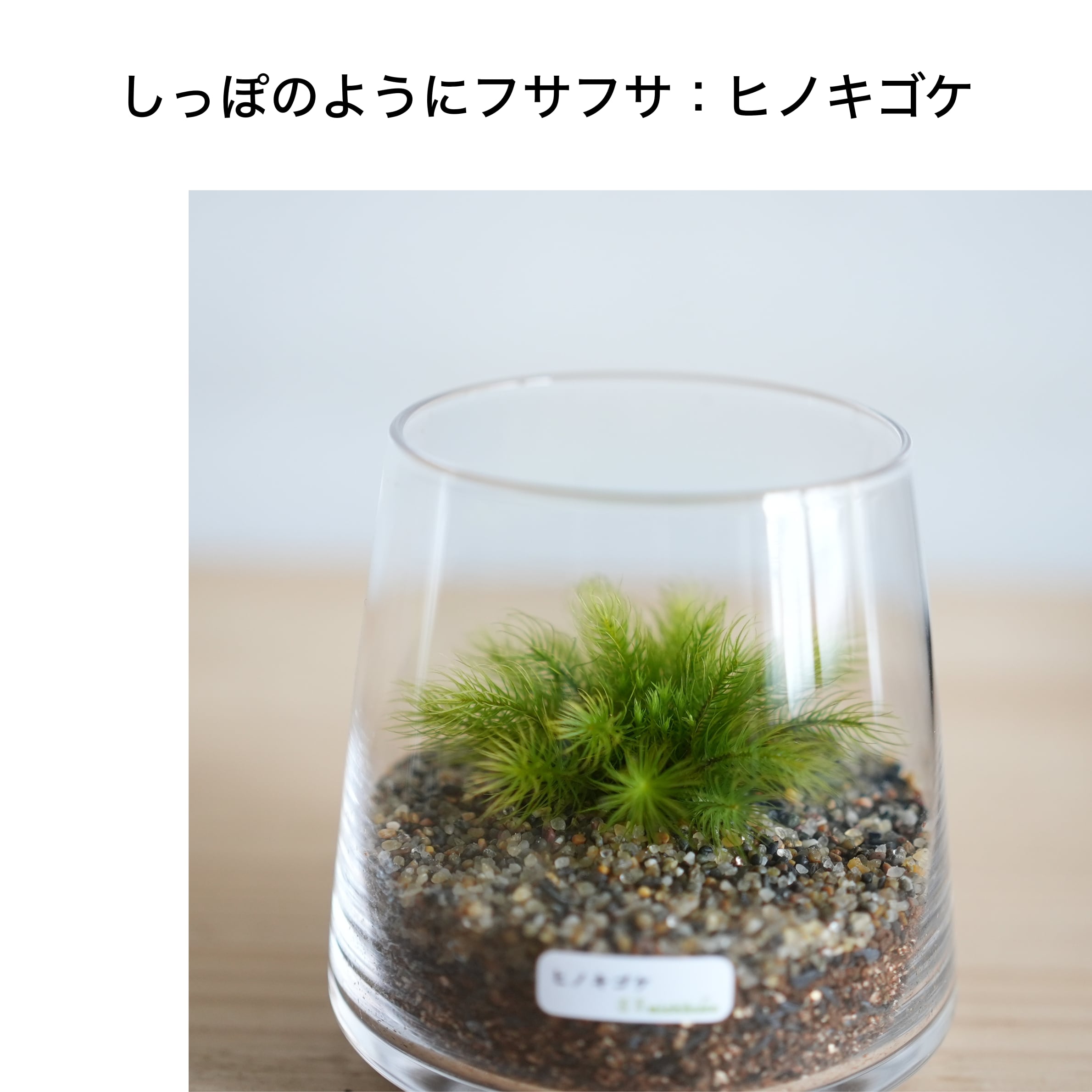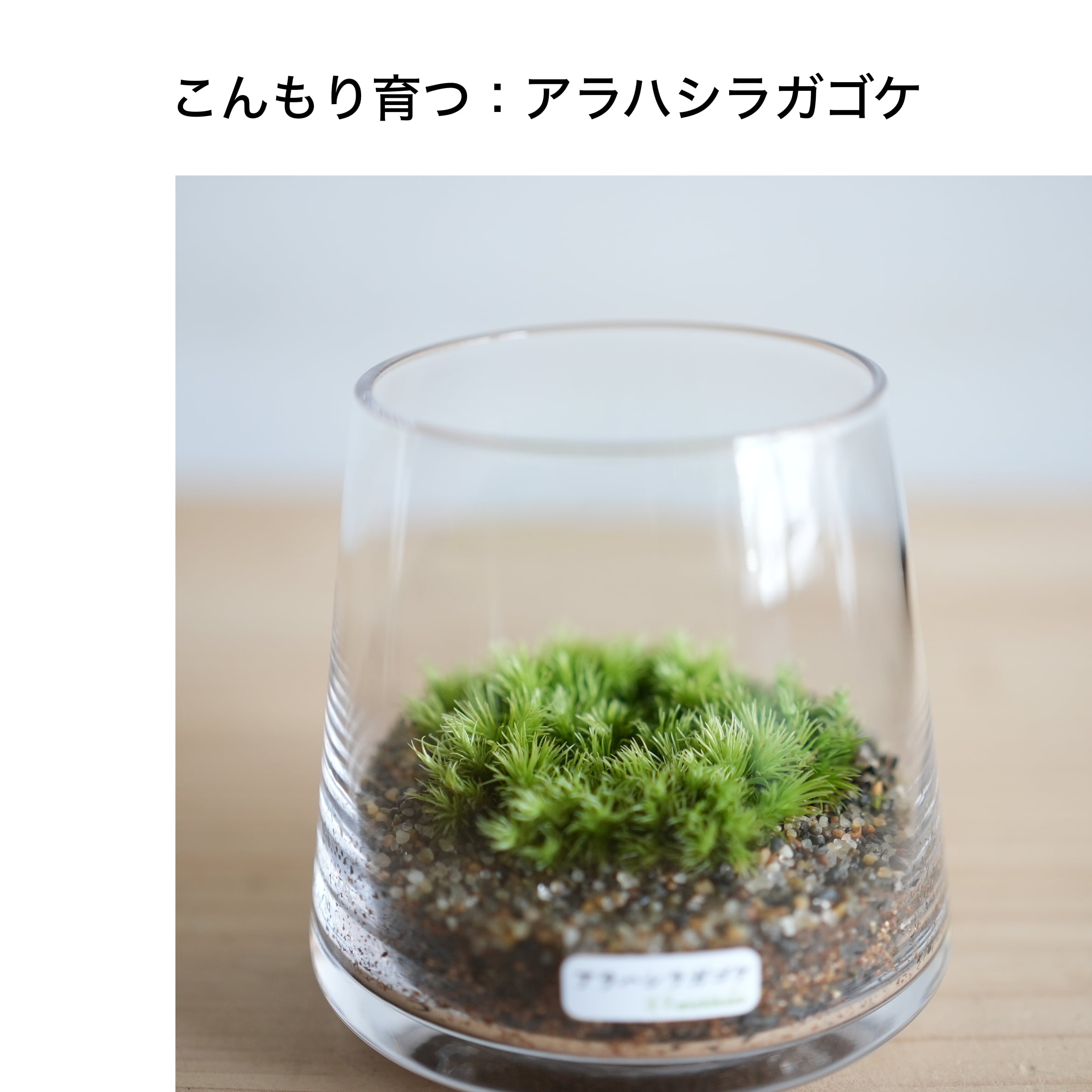 1種類のコケをじっくり育てて楽しめる、初めての方におすすめの苔テラリウムです。