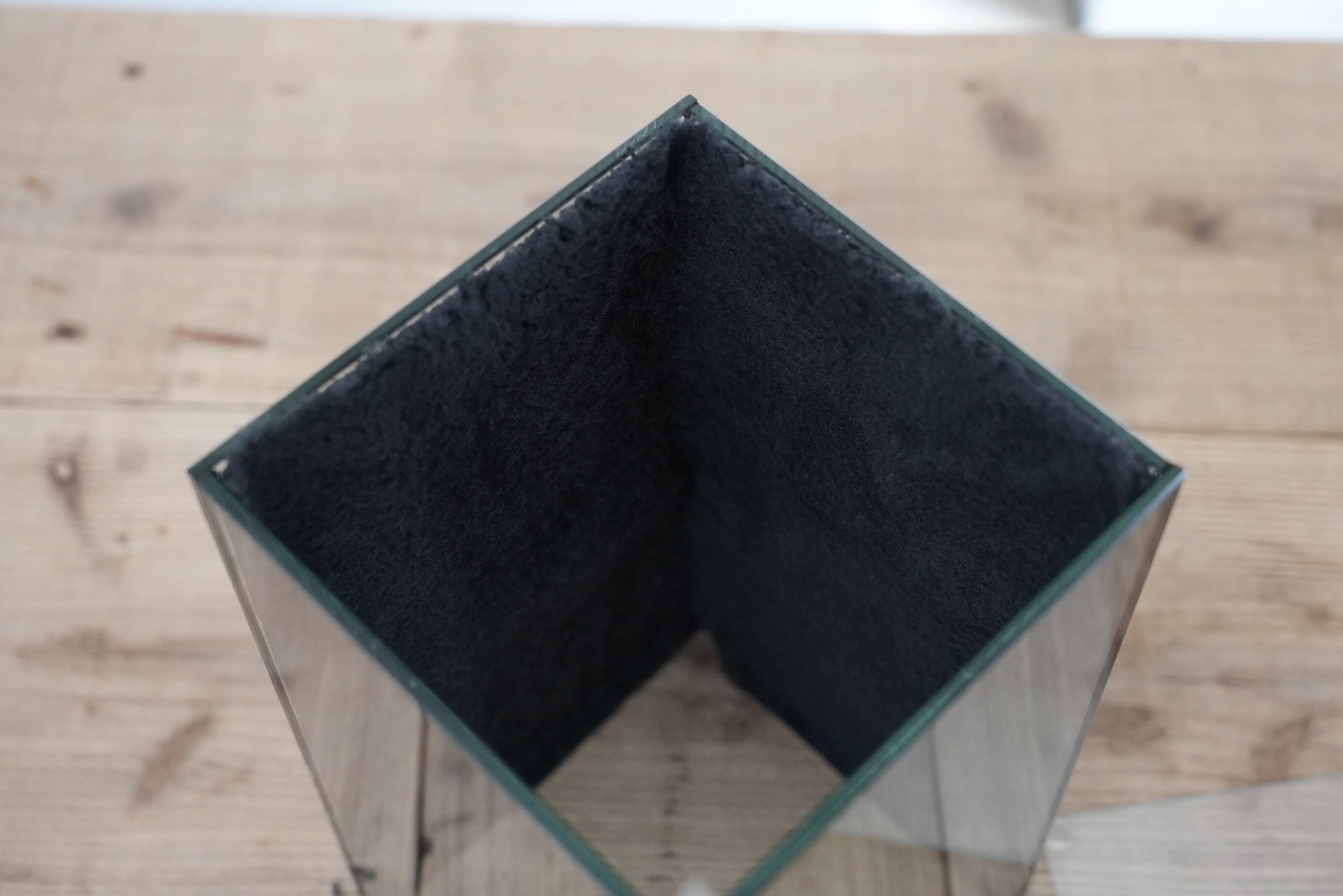 ●15㎝水槽<High>の2面に活着君を貼り付けました。すぐに苔壁作品が作れます。