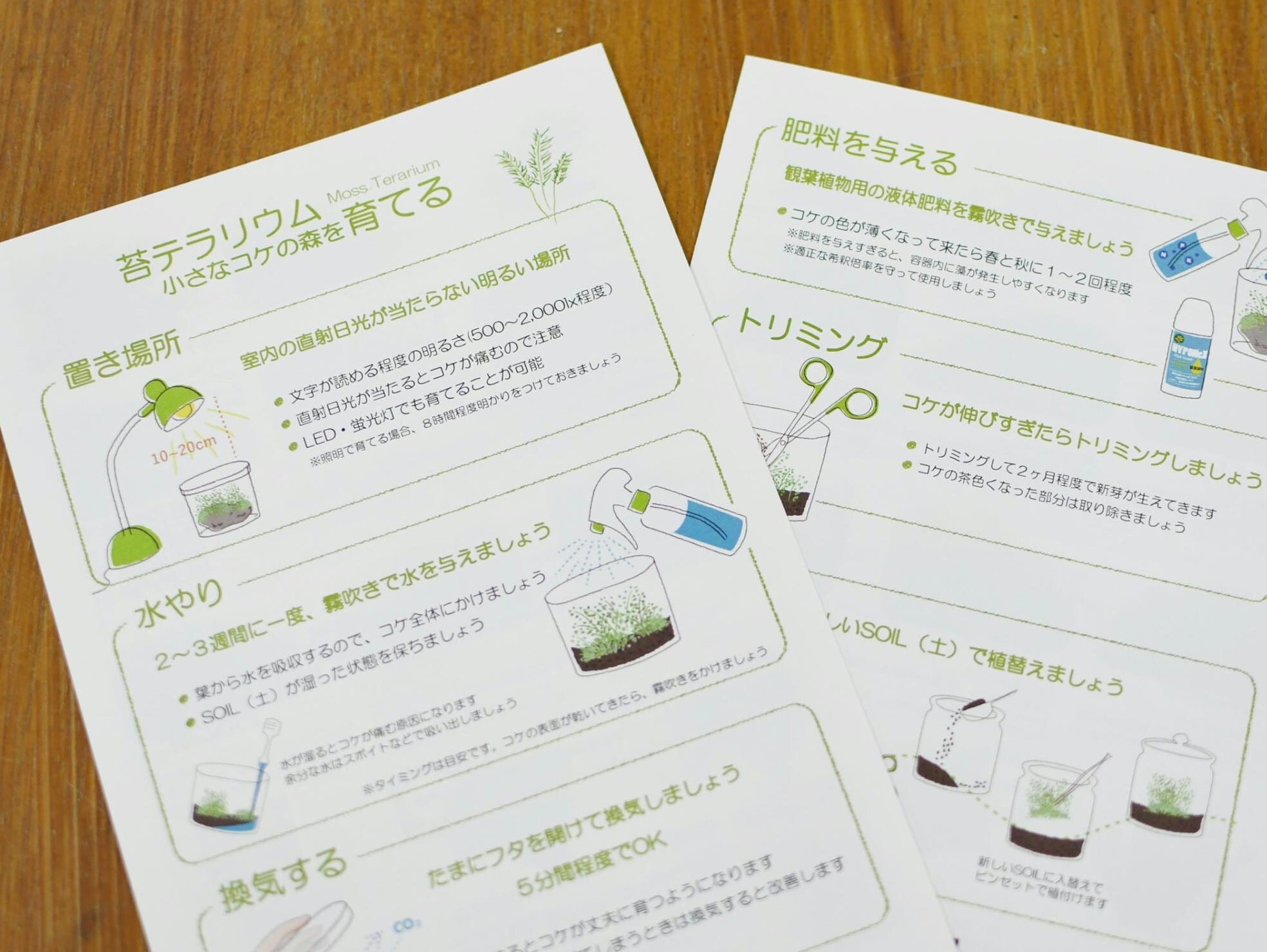 初めての方でも安心して育てられるように、育て方の詳しいリーフレットをお付けしています。