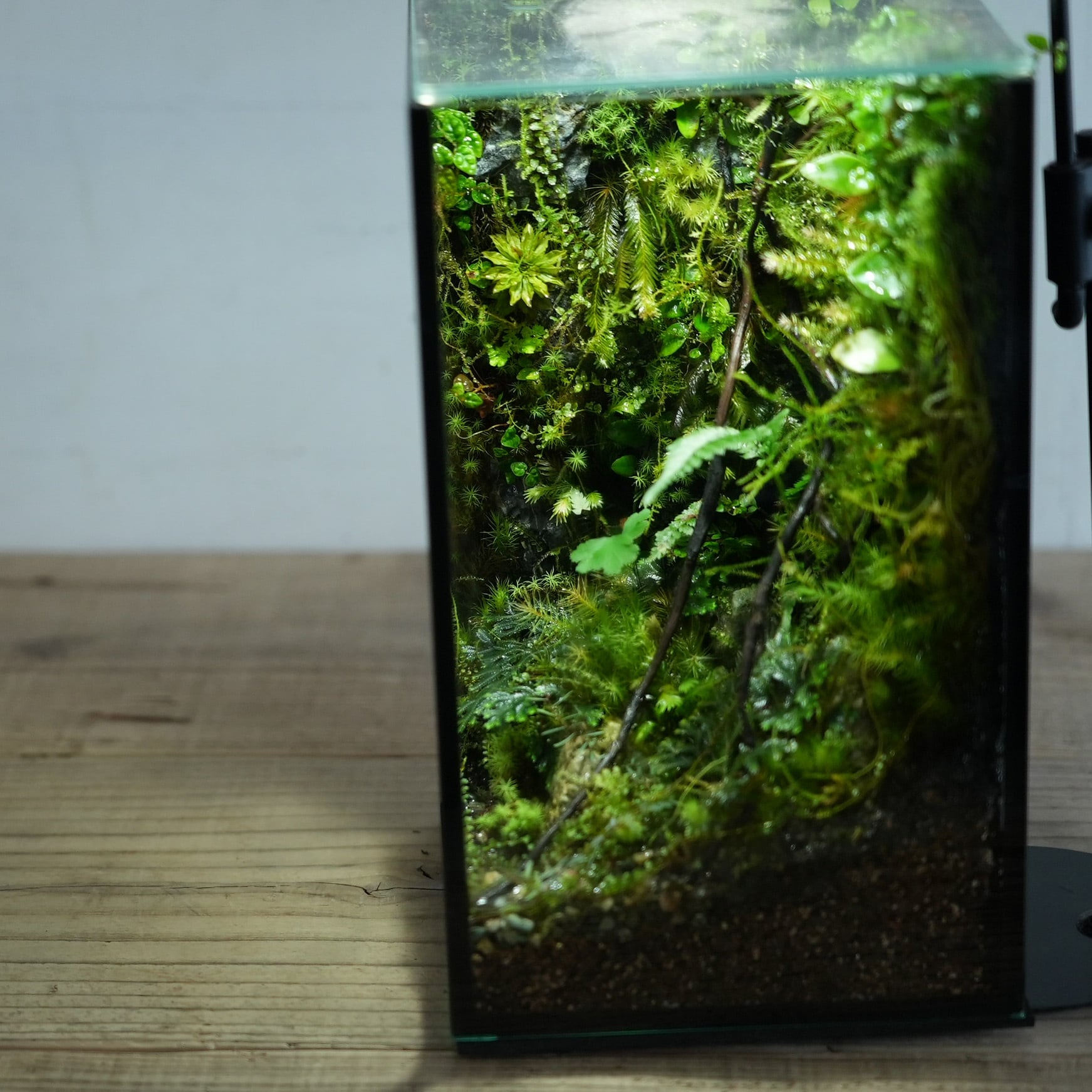底面に植えられたセラギネラが青光りして、妖艶な世界を演出しています。